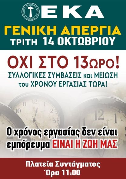 • Απόσυρση των αντεργατικών διατάξεων του νομοσχεδίου, που αποτελεί δώρο σε συγκεκριμένα εργοδοτικά συμφέροντα. Λέμε όχι στο 13ώρο.